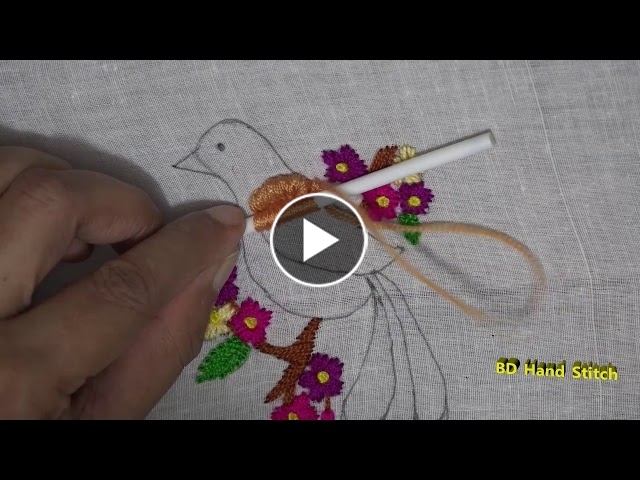 Hand Embroidery / Beautiful Bird Embroidery with Easy Stitches Satin Stitch, Checkered Stitch, Back Stitch, Caston Stitch, French Knot Stitch