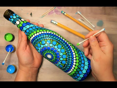 EASY Dot Mandala Bottle Painting Using ONLY Qtip Toothpick Pencil