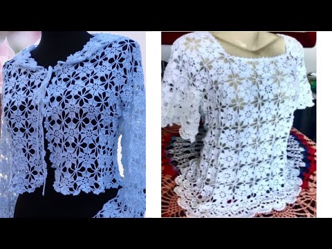 Beautiful Crochet lace flower blouse stylish leaf pattern short frock design ideas