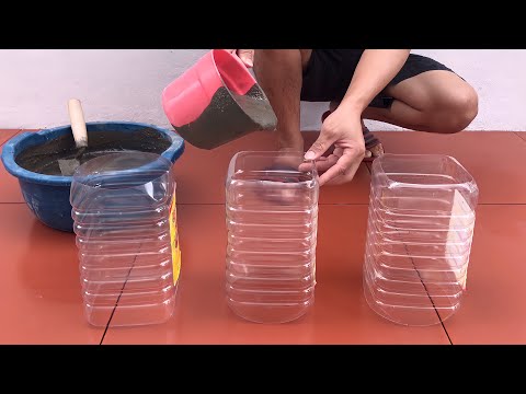 Unique Creation From Cement - Recycle Old Plastic Bottles To Cast Stunning Cement Flower Pots