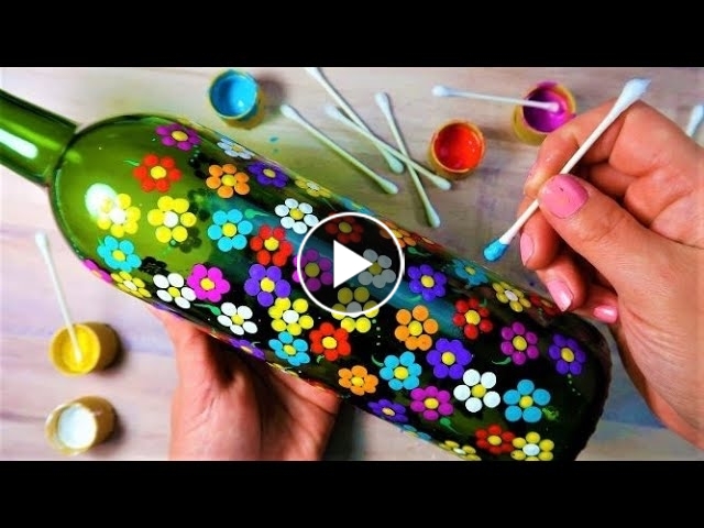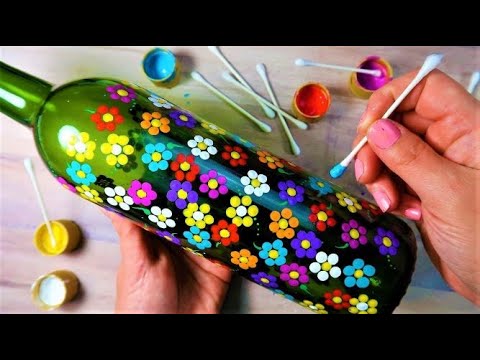 SUPER EASY Qtip Bottle Painting Rainbow Dot Flowers