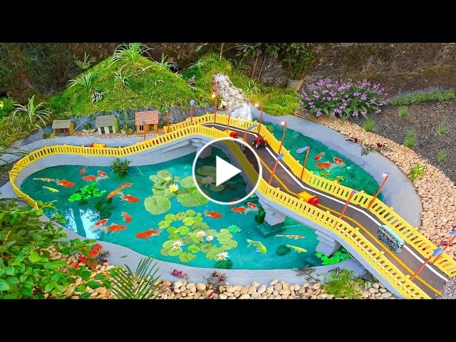 My Dad builds amazing waterfall aquarium for our empty garden